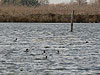 Kaczki krzyżówki Anas platyrhynchos (widać je też na fot. 1 w głębi) oraz para łabędzi niemych Cygnus olor.